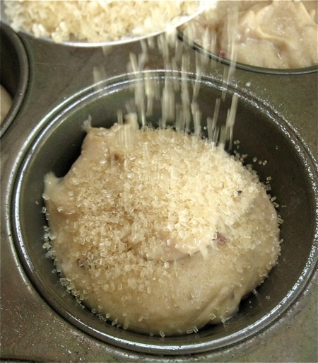 Sprinkle the top of each muffin with coarse sugar, if desired; coarse white sparkling sugar, or Demerara sugar.