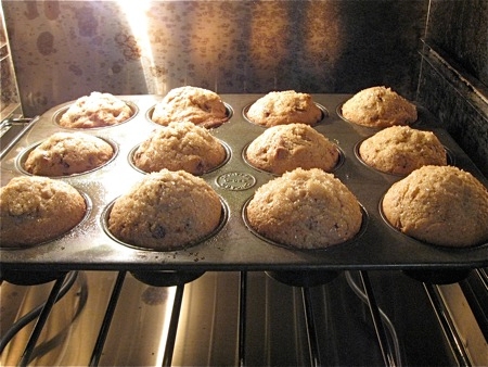 Bake the muffins for 14 to 15 minutes, until a cake tester or toothpick inserted into one of the center muffins comes out clean.