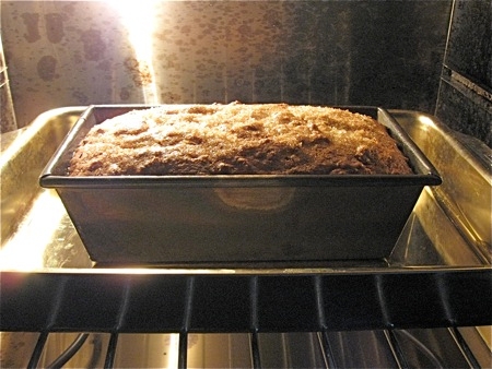 Bake the loaf for 45 to 55 minutes, until a cake tester or toothpick inserted into the center of the loaf comes out clean.