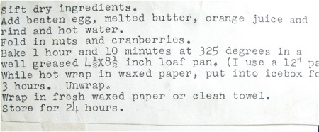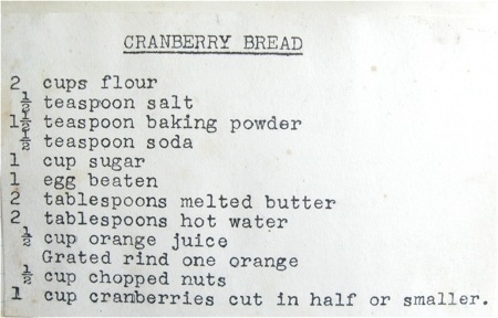 Looking the place I usually look first, I opened my grandmother's wooden recipe box. And found a recipe called CRANBERRY BREAD.