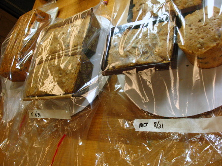 Those fruit and nut studded wonders went straight to the tasting table. You absolutely can eat fruitcake the day that it's made. You'll get the mild spice from the cake, the crunch of the nuts, and the tang of the fruits. If you used liquor, it will be a little sharper, not quite as mellow. Still and all, a sublime dessert for coffee time any day of the week.