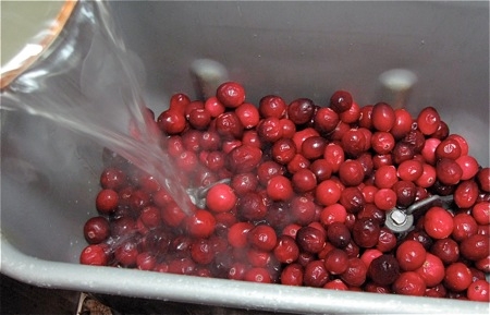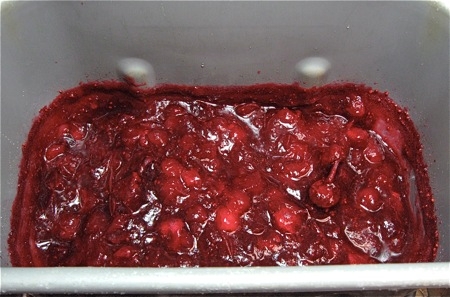Pour a 12-ounce bag of fresh cranberries (or thawed, if they've been frozen) into the bread machine bucket.