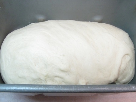 The pre-set Dough cycle includes a rather useless warm-up period, so long ago I set one of my three Homemade cycles for a dough cycle with no preheat; it takes 90 minutes – without the preheat.
