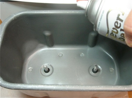 Remove the paddles from the bread machine bucket, and spray the bucket with non-stick vegetable oil spray. We use Everbake in the test kitchen.