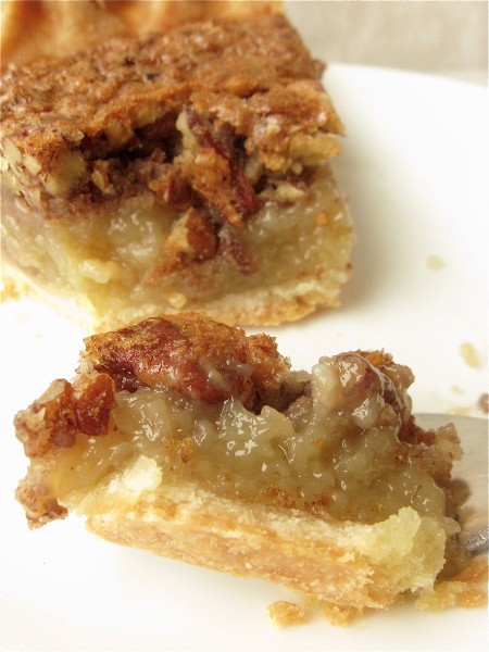 Aside from the fact it's made with chopped rather than whole pecan halves (personal preference), I'll bet you can truthfully answer no – it doesn't look any different than a typical slice of pecan pie.