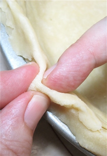 Invert the crust into the prepared pie pan, and shape a tall, fluted edge.