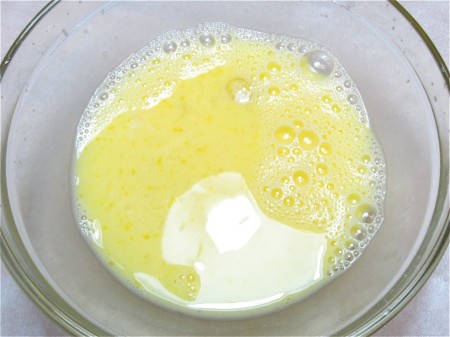Whisk together 1 large egg and 2 teaspoons lemon juice or vinegar.