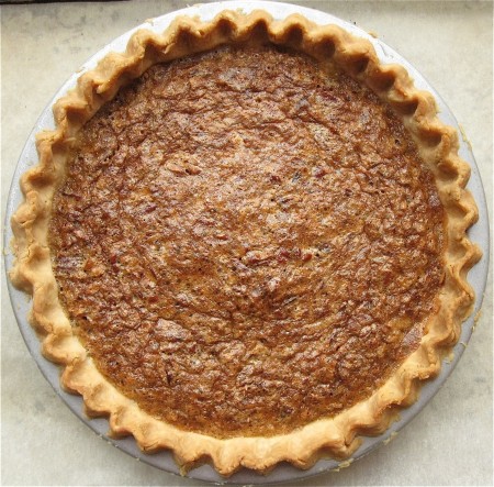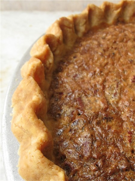 Note: the recipe for this pecan filling isn't a formal recipe; it's a variation sent in by reader Chris Parks. To find it in our archive, check out the "baker's tips" at the bottom of our Pecan Pie recipe. The Pecan Pie recipe instructions are slightly different than these; they have you pre-bake the crust. I found that's not necessary with this particular crust, though you can certainly pre-bake if you like.