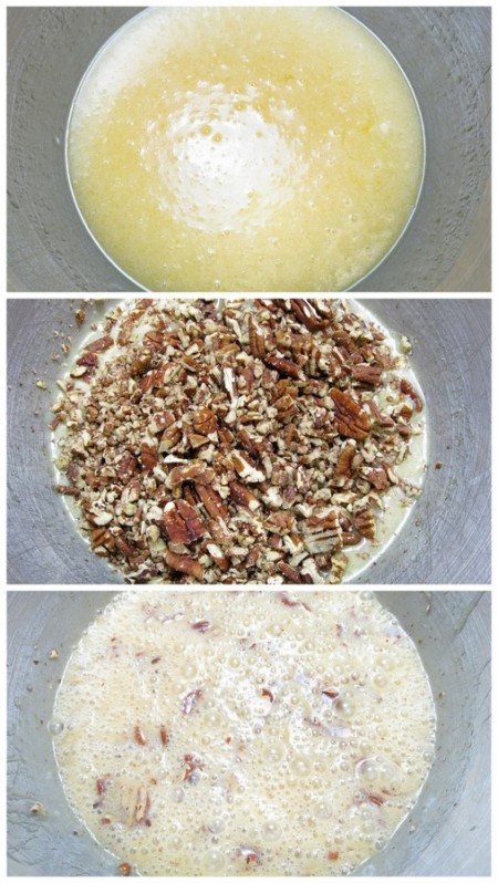 Stir in the chopped pecans, and pour the mixture into the pie shell.