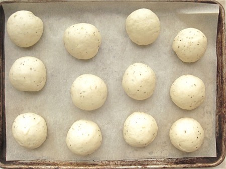 Divide the dough into 36 pieces, and round each piece into a rough ball.