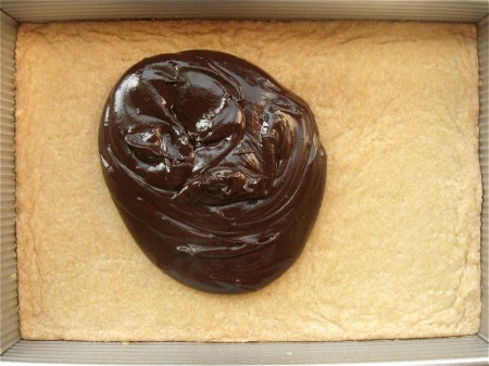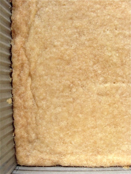Bake the crust for 35 to 40 minutes, until it's golden brown around the edges and a slightly lighter golden brown on the top. Remove it from the oven, and loosen the edges with a heat-resistant plastic knife or a table knife. Make the topping while the shortbread begins to cool.