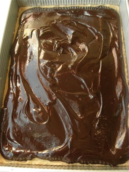 Cover the pan, and place the bars in the refrigerator for about 15 to 20 minutes, to set the chocolate a bit. Using a sharp knife or baker's bench knife, cut 2" bars.