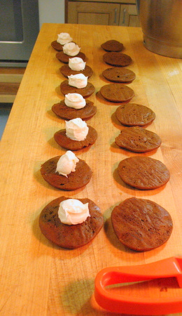 Line 'em up! Filling whoopies goes oh-so-quickly when you line up similar sizes and shapes side by side.
