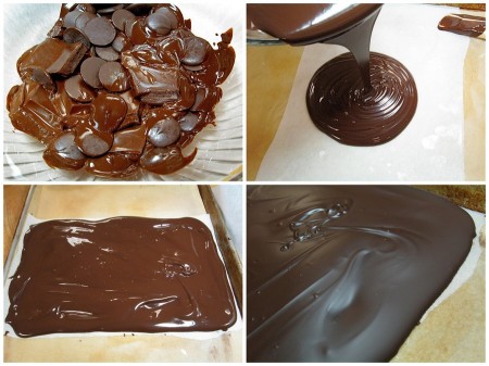 Melt chocolate. Spread flat. Cool, and break into pieces. That's it.