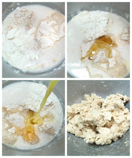 Put the following in a mixing bowl (or your bread machine bucket, set on the dough cycle):