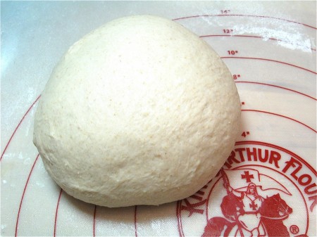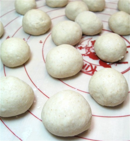Shape each piece into a rough ball by pulling the dough into a very small knot at the bottom (think of a balloon with its opening knotted). Then roll the balls under the palm of your hand until they're smooth.
