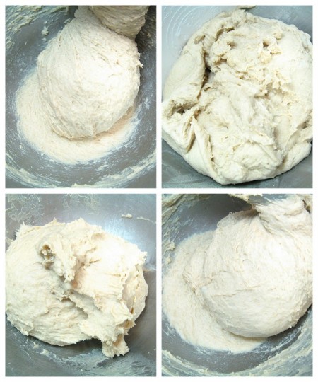 If you're kneading in a stand mixer, you may notice the dough sticking to the sides and bottom of the bowl; simply take a bowl scraper, scrape it into the center, and continue to knead.