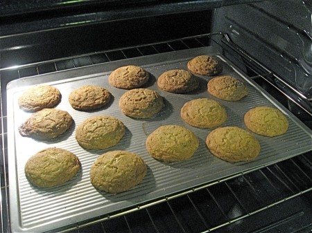 In front, our cookies; behind, Pie's cookies. Theirs are darker, but taste/texture is very close.