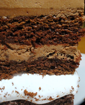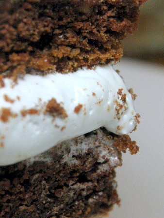 Seriously enticing waves. Don't you just want to put a finger through the computer screen and catch that cascade of sweet goodness? Better yet, put your whole hand through and take the piece of cake. Grab a fork and glide though the ganache, scooping up cake and Fluff, too. You'll travel back to your youth, your first love of chocolate, my forever love: milk chocolate.