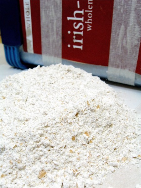 Our Irish-style wholemeal flour, a whole wheat flour flecked with bran. Maybe I won't have to eat that Raisin Bran after all...