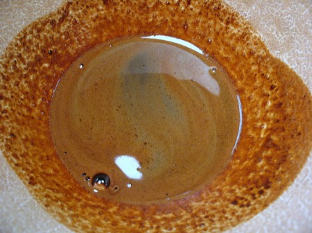 Pour the strong coffee concentrate into 1 cup (227g) of prepared buttercream icing. It won't want to mix together at first (that whole oil/water thing), but keep stirring and it will come together.