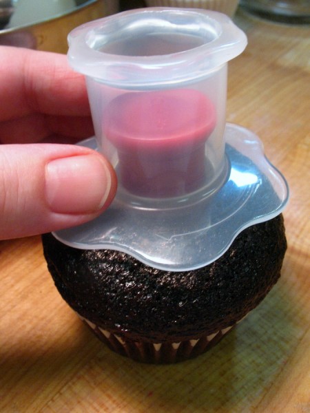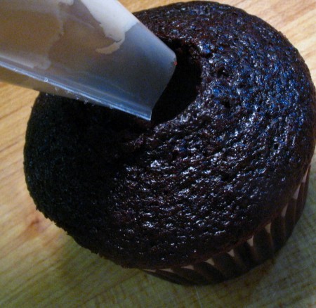If you don't have a special cupcake corer you can use an apple corer, or any round tube. Just be sure you don't core all the way through the cupcake. That could get pretty messy.