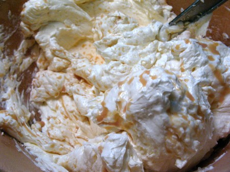To top the cupcakes, pour 2 tablespoons Irish cream liqueur into 2 cups (454g) prepared buttercream icing. Again, it will take a little stirring to get everything to combine.