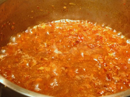 By simmering the jam in a small saucepan over medium heat until the liquid reduces and the jam is thick and syrupy. By now the scent has practically driven you mad, so it's time to start tasting.