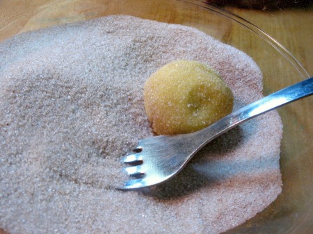 Drop each ball into the cinnamon-sugar and toss until well coated. If you really like the coating best, you can toss each dough ball twice.
