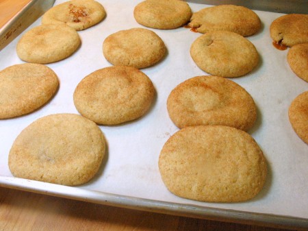 I switched recipes to our Snickerdoodle recipe online and the cookies came out just right. Tender, chewy, fragrant on the outside with sweet, buttery caramel on the inside.