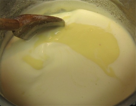 ...and return to low heat, stirring constantly with a wooden spoon or heat-resistant spatula until the mixture thickens enough to coat your utensil. Remove the pan from the heat immediately.