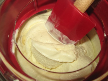 For best results, the ice cream base should be refrigerated overnight; so planning to make it a day ahead will ensure more success when it's turned in the machine. Place your maker's bowl into the freezer at least a day or two ahead of time so that it's deeply frozen.