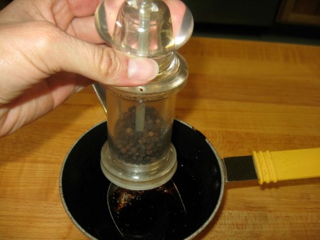 About four good cranks on the pepper grinder are just enough to balance the reduction for a perfect accompaniment to ice cream and strawberries.