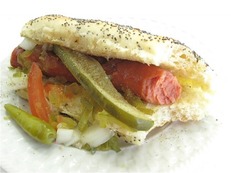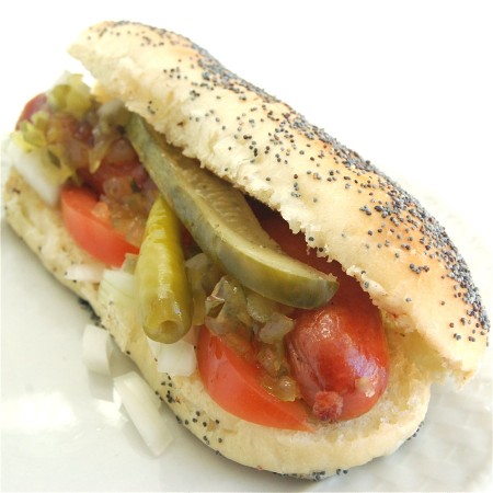 "Needless to say, the carrier for this megalopolis had to be substantial: no undersized, spongy supermarket dog buns for this creation, no sir! In the Windy City you'll find a big, chewy poppy seed bun that has enough oomph to support the skyscraper constructions that Chicago natives depend on for a quick lunch. Here's our version."
