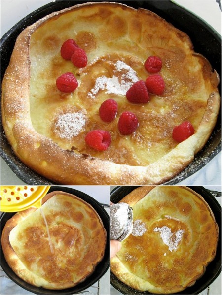 All three of these titles refer to a tender, eggy, oversized pancake, as wonderful to eat as it is spectacular to look at – and fast/easy to make.