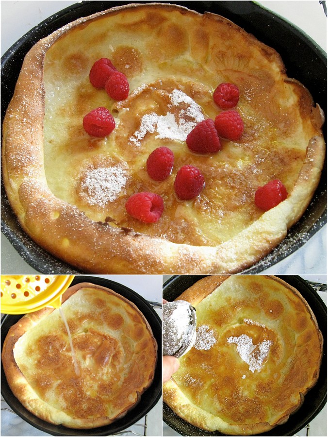 And for good reason. A rather unprepossessing flour, milk, and egg batter is poured into a pan, and 20 minutes later emerges as a giant golden puff, awaiting a final anointing of lemon juice and sugar.