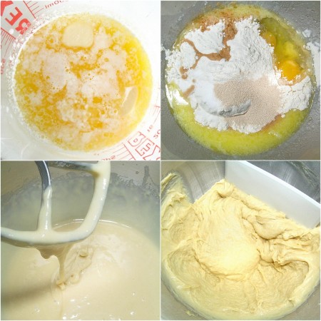 Heat to lukewarm, stirring to soften/melt the butter. Pour the mixture into a mixing bowl, and let it cool until it's below 120°F, about 15 minutes.