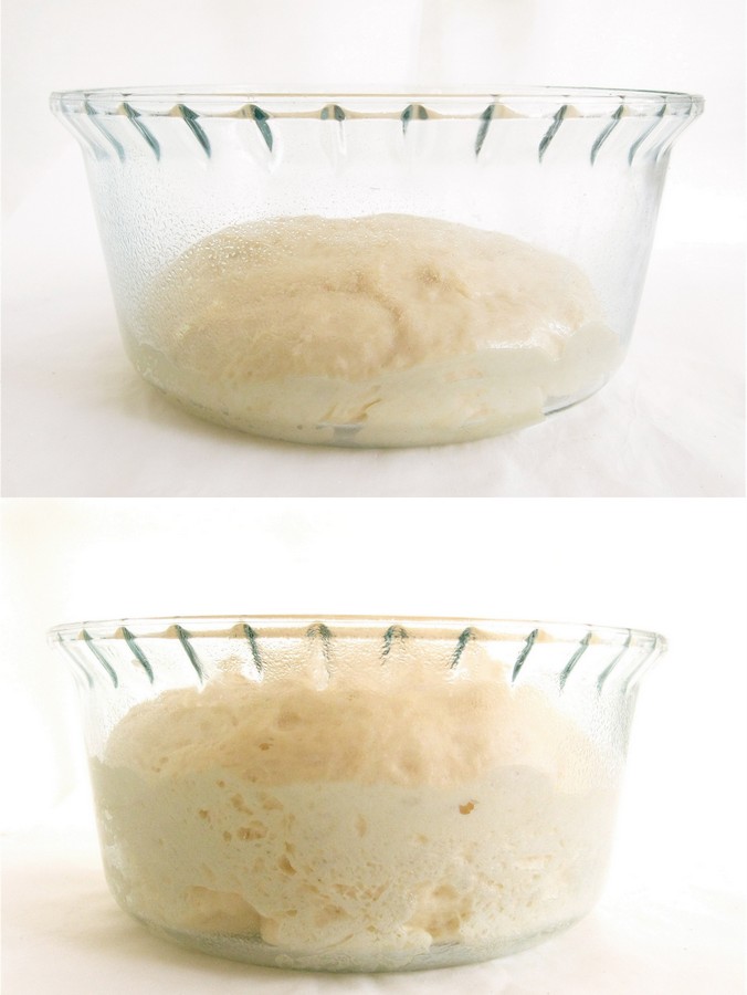 Cover the dough and allow it to rise for 45 to 60 minutes, or until almost doubled in bulk. An 8-cup measure is a neat tool here, since it lets you track the dough's rise easily.