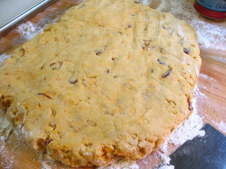 When the dough is just combined, turn it out onto a clean floured surface and knead 4 to 5 times to bring it all together.
