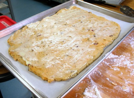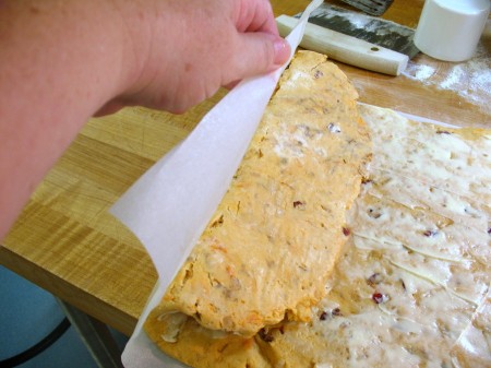 After the second business-letter fold, pat the dough out once more to be about 9" x 14". Cut into 8 bars.
