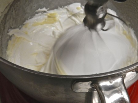 Italian: A meringue is made with egg whites and sugar, and sugar syrup cooked to at least the soft ball stage (240°F) is poured into it with the mixer running. This sets the egg whites and forms a stable base for the frosting. Once the meringue is cooled to 80°F (with the mixer running the whole time), soft butter is added, a lump at a time, until the frosting comes together.