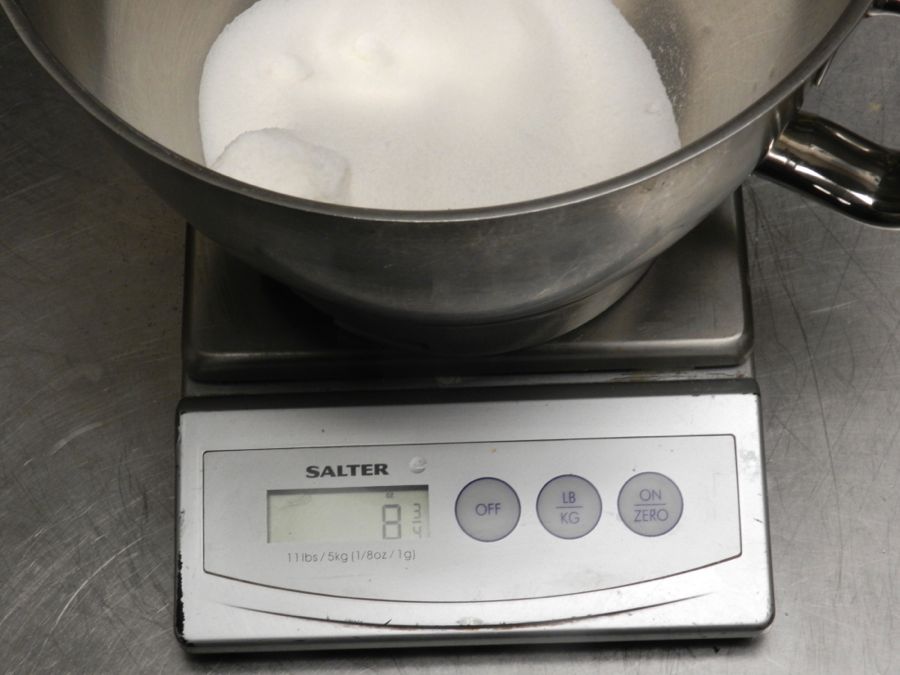 Measure your sugar into a big mixing bowl. Baker's Special is a more finely ground sugar, and will dissolve more quickly, which is why I gave it a shoutout up top.