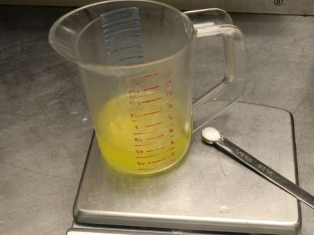 Next we need some egg whites and a bit of salt. The recipe calls for 1/2 cup, and when you put 3 large egg whites into a measuring cup, this is what you get: