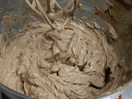 It's time for this mixture to join the buttercream. Once it's all in and the frosting is mixed, here's what you get.