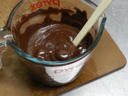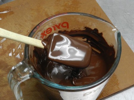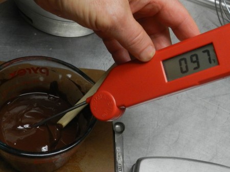 Nice and smooth. Just for grins, I temped the chocolate at this point: