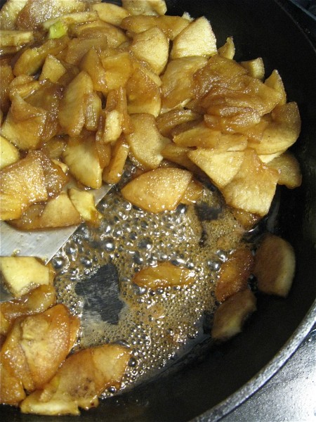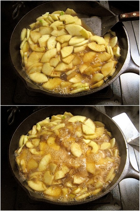 See how the liquid is so bubbly that the bottom of the pan is showing in spots? That means the apples are ready.