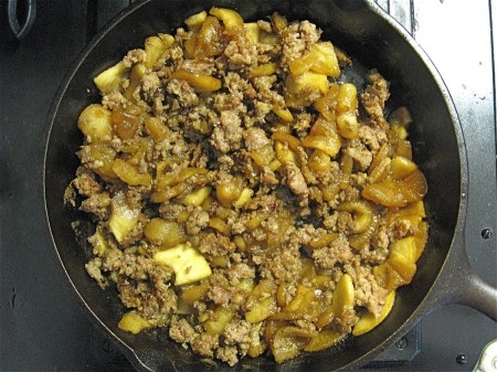 Stir the cooked sausage into the apples...