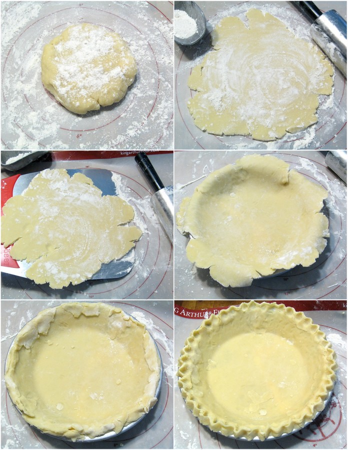 By the way, see how raggedy my crust is when I roll it out? This is kind of a hallmark of a high-fat crust; it's tender, and tends to split around the edges.