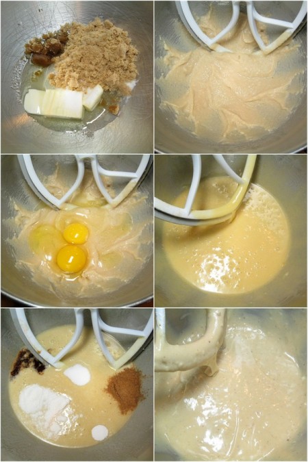 See how I've spooned the baking powder, nutmeg, etc. onto different parts of the batter in the bowl? It's my visual reminder about what I've added, and what still needs to go in. You never know when the phone will ring, or you'll catch the puppy chewing on a chair leg – thereby totally losing your place in the recipe, right?