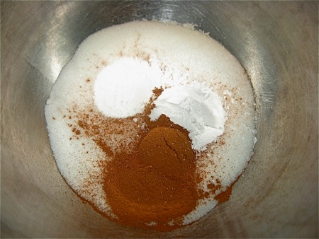 For the cinnamon filling, mix 1/2 cup granulated sugar, 1 tablespoon cinnamon and 2 teaspoons tapioca starch. Stir in 1/2 cup chopped pecans.